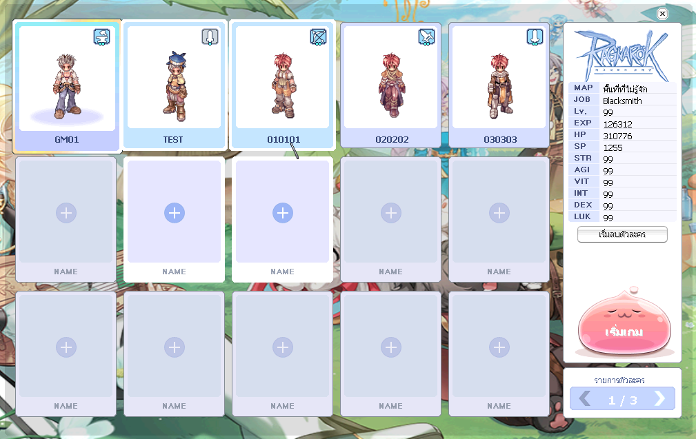 | BARD            | ลม (Wind) 3%           | ศักดิ์สิทธิ์ (Holy) 3% |